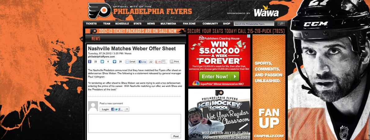 Philadelphia’s four-sentence story was dwarfed by coverage around the rest of the league. Flyers GM Paul Holmgren’s terse statement contrasted with the Predators’ press release announcing “the most important hockey transaction in franchise history.”